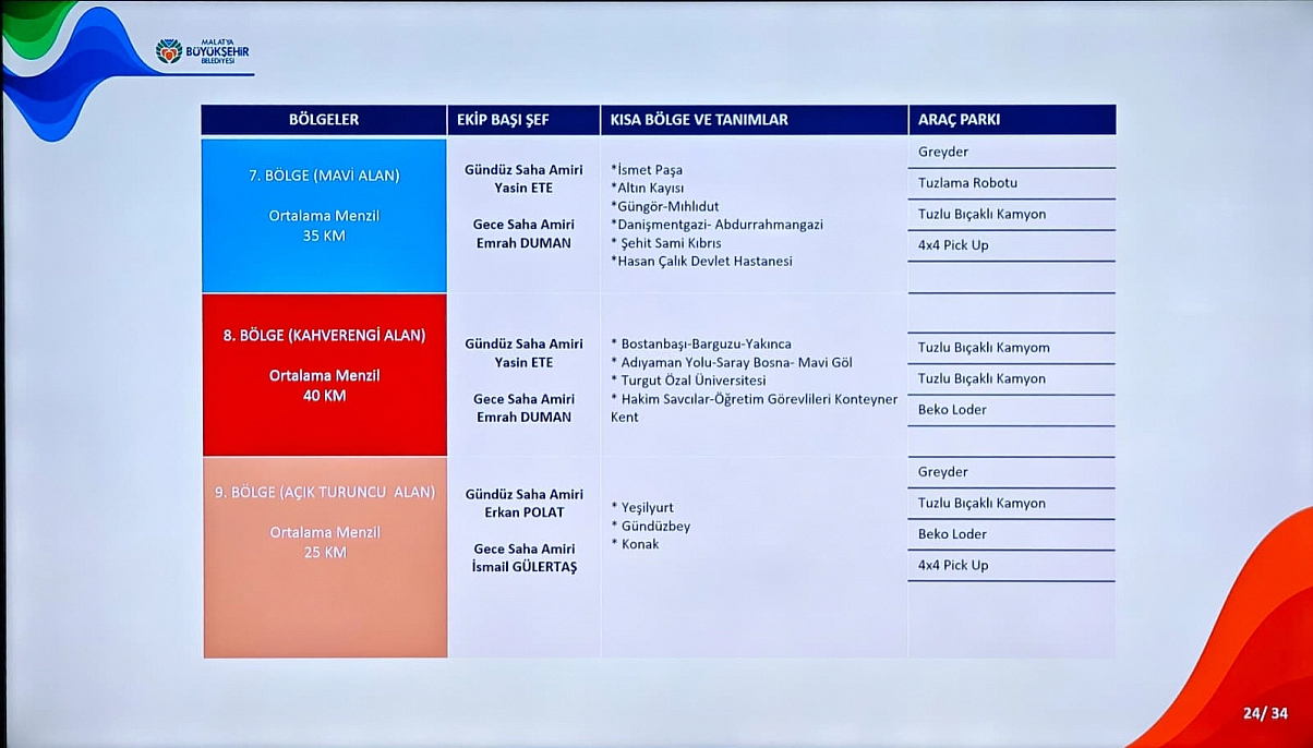 Malatya'da soğuk havaların etkisini artırdığı bu günlerde, olası kar yağışında vatandaşların mağdur olmaması için önlemler üst seviyeye çıkarıldı. Malatya Büyükşehir Belediye Başkanı Sami Er, merkezden kırsala uzanan 12 bin 768 kilometrelik yol ağında 40 ekip, toplam 269 araç ve bin 117 personelin 7/24 görev başında hazır beklediğini duyurdu.