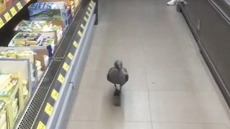 Samsun'da bir markete giren martı, bütün reyonları gezdikten sonra bir şey almadan çıktı. Gülümseten o anlar ise bir vatandaşın cep telefonu kamerasına yansıdı.