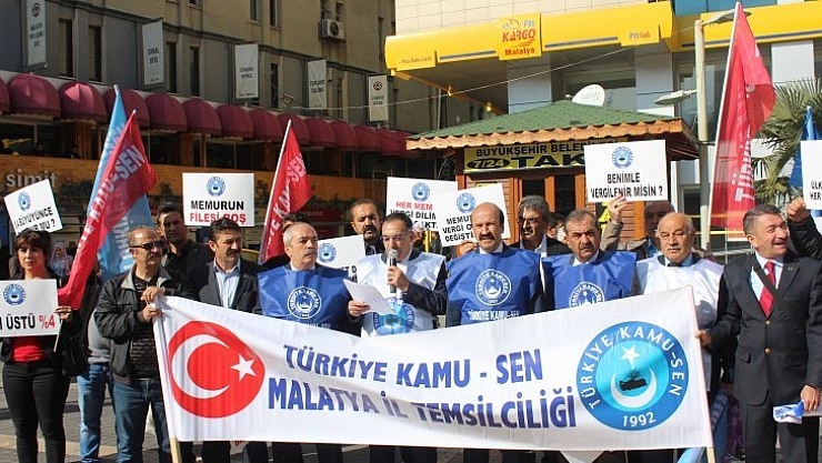 Türkiye Kamu-Sen Malatya İl Temsilciliği tarafından Merkez Postane önünde 'Memur unutulmasın' sloganı ile protesto yapıldı. Türk Ulaşım-Sen Malatya Şube Başkanı Önder Akgül, '2020 yılı bütçesi, memur ve emeklinin kurban edildiği bütçe değil, memurun bütçesi olsun diyoruz' dedi.