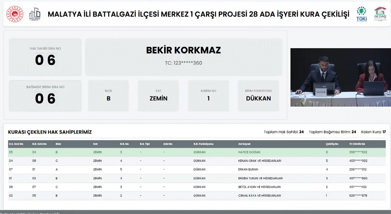 Malatya'da 6 Şubat 2023'teki depremlerde yıkılan veya ağır hasar gören dükkânların kurası çekiliyor. Merkez 1 Çarşı Projesi kapsamında 28 Ada Zemin Kat 24 Adet dükkanın kura çekimini sonuçları belli oldu. İşte hak sahibi tam liste…