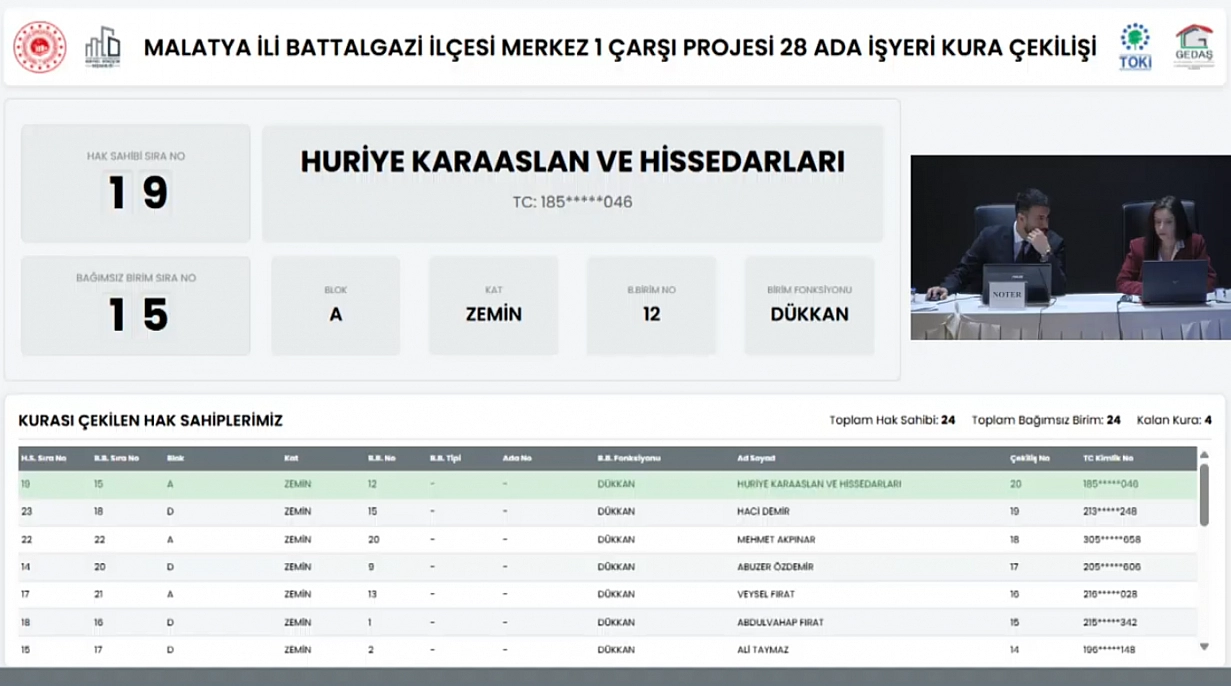 Malatya'da 6 Şubat 2023'teki depremlerde yıkılan veya ağır hasar gören dükkânların kurası çekiliyor. Merkez 1 Çarşı Projesi kapsamında 28 Ada Zemin Kat 24 Adet dükkanın kura çekimini sonuçları belli oldu. İşte hak sahibi tam liste…