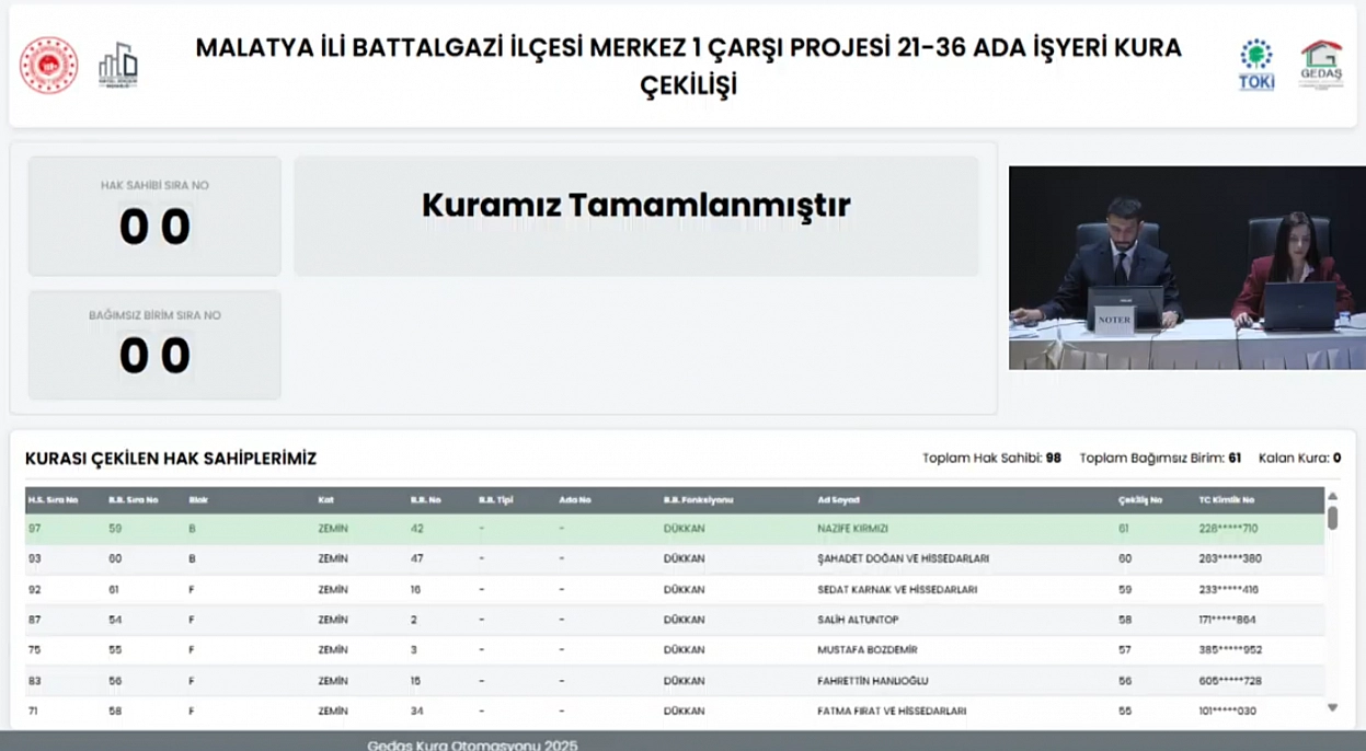 Malatya'da kura heyecanı: 61 işyeri ve 480 konutun hak sahibi belli olacak! Canlı izlemek için tıklayın...