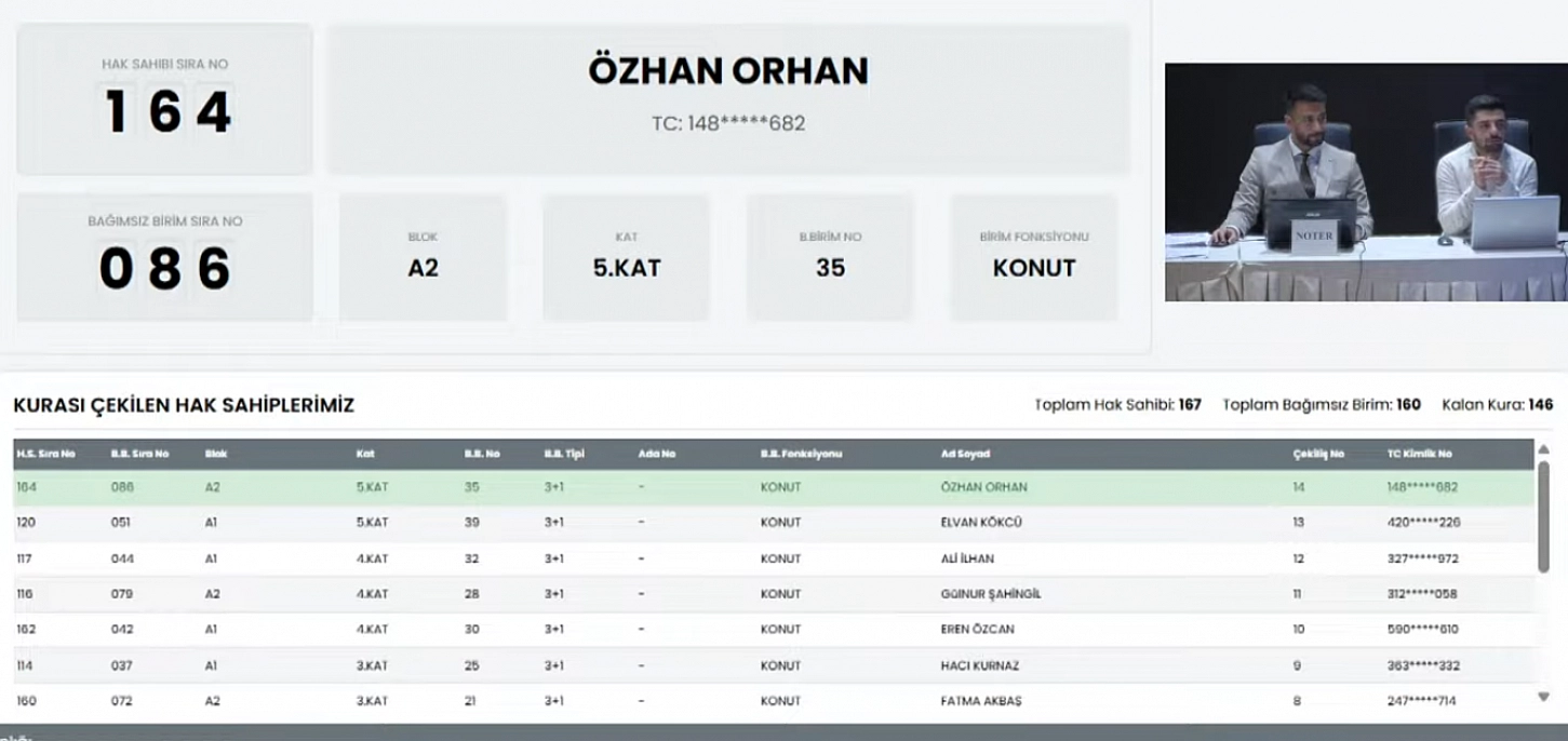 Malatya'da 6 Şubat 2023'teki depremlerde yıkılan veya ağır hasar gören ve yapımı tamamlanan konutların kurası çekiliyor. Merkez 63 Projesi kapsamında Zaviye Mahallesi'nde 160 konutun kura sonuçları belli oldu.