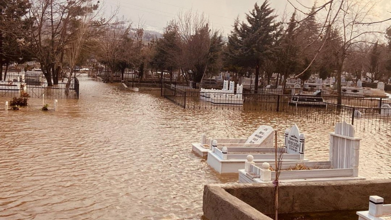 Adıyaman'ın Gölbaşı ilçesinde bir mezarlık yağışlardan dolayı sular altında kaldı.
