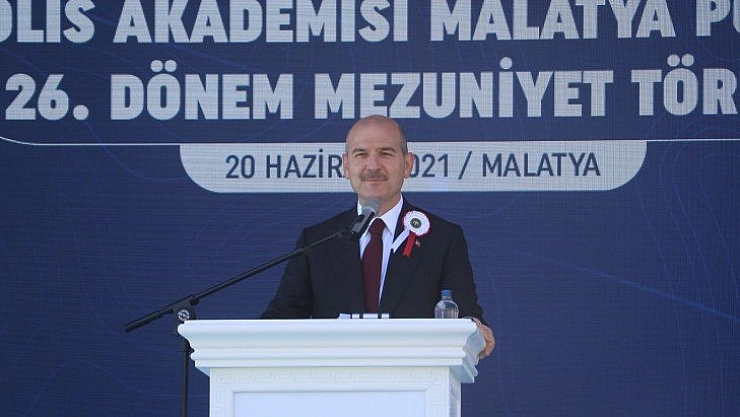 İçişleri Bakanı Süleyman Soylu, Malatya Polis Akademisi’nin 26. dönem mezuniyet törenine katıldı. Bakan Soylu, törende yaptığı konuşmada polis alım ilanına çıkıldığında 105 bin 128 kişinin başvurduğunu anımsatarak, “11 Ekim 2019’da ilana çıktığımızda, ‘7 bin polis alacağız’ dediğimizde ‘ben de varım’ diyen, ön başvuru yapıp bu şerefli üniformayı giymeye talip olan vatan evlatlarının sayısıdır. Bu sayı, bu 105 bin 128 sayısı, bu milletin bu teşkilata sevgisini, iştiyakını, itibarını anlatan sayıdır. Televizyonda bir şehit haberi gördüğünde korkan değil, hırslanan, ‘Bir dalımız kesilirse bin filiz veririz’ diyen bu büyük, asil milletin, ‘Bu bayrağa feda olsun’ diye devletin emrine vermeye hazır olduğu evlatlarının sayısıdır. Biz bu evlatların içinden 7 binini alabildik. Buradaki arkadaşlarımızla birlikte tüm Türkiye’de 24 POMEM merkezinde sınavı geçen 6 bin 760 evladımız bugün mezun olmaktadır. Geride kalan o 98 bin 368 evladımıza, belki yaşı tutmadığı için, belki başka bir nedenden başvuramayan ama gönlü aklı bizimle olan yüzbinlerce evladımıza, onların aslan yürekli ailelerine sesleniyorum. Desteğinizi aldık, mesajınızı aldık, hepiniz bizim gözbebeğimizsiniz, hepiniz bizim gücümüzsünüz ve moralimizsiniz” dedi.