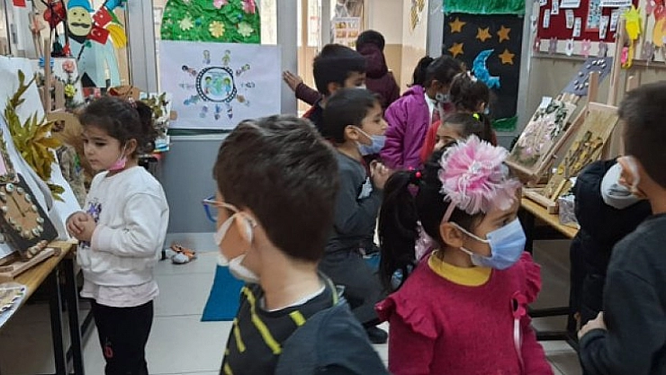 Malatya'nın Kale ilçesinde ilkokul öğrencileri doğada toplanan çeşitli malzemeler ve geri dönüşüm atıklarından 'Minik Eller Doğa Sergisi' açtı.