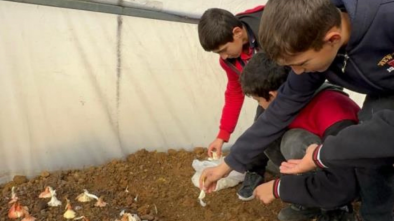 Elazığ'ın Arıcak ilçesinde kurulan serada öğrenciler, toprakla buluştu.