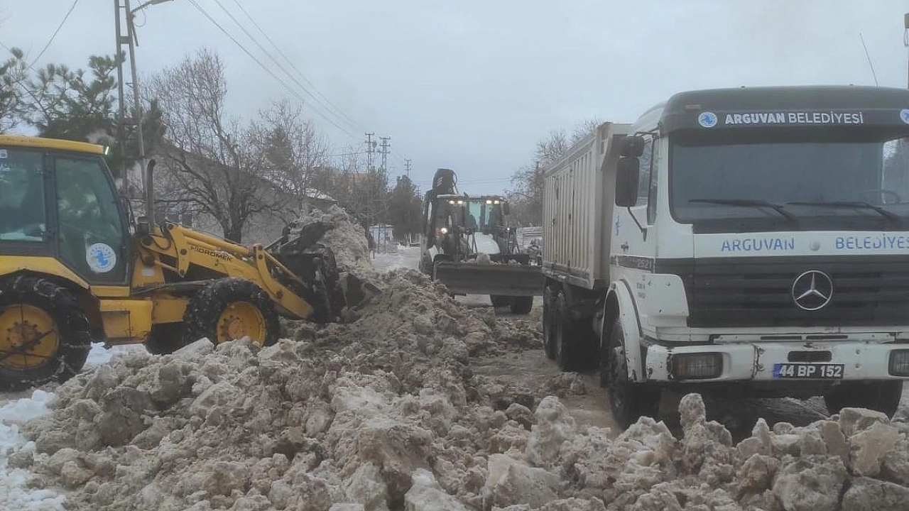 Malatya'nın Arguvan ilçesinde karla mücadele çalışmaları devam ediyor.