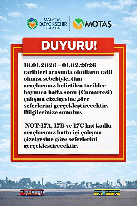 Malatya Büyükşehir Belediyesi Ulaşım Hizmetleri (MOTAŞ), okulların yarıyıl tatiline girmesiyle birlikte toplu ulaşım seferlerinde geçici bir düzenlemeye gitti. Düzenleme kapsamında bazı otobüs hatlarının sefer saatleri değiştirildi. Peki, hangi otobüslerin seferleri değişti? Düzenleme ne zamana kadar sürecek? İşte detaylar…