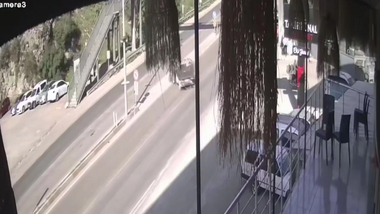 Hatay'ın Belen ilçesinde motosiklet ile hafif ticari aracın karıştığı kazada 1 kişi yaralandı. Motosikletin, hafif ticari araca ok gibi saplandığı anlar güvenlik kamerasına yansıdı.