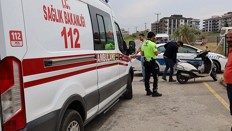 Manisa'nın Turgutlu ilçesinde meydana gelen trafik kazasında motosikletin çarptığı yaya kafasını beton zemine çarparak yaralandı.