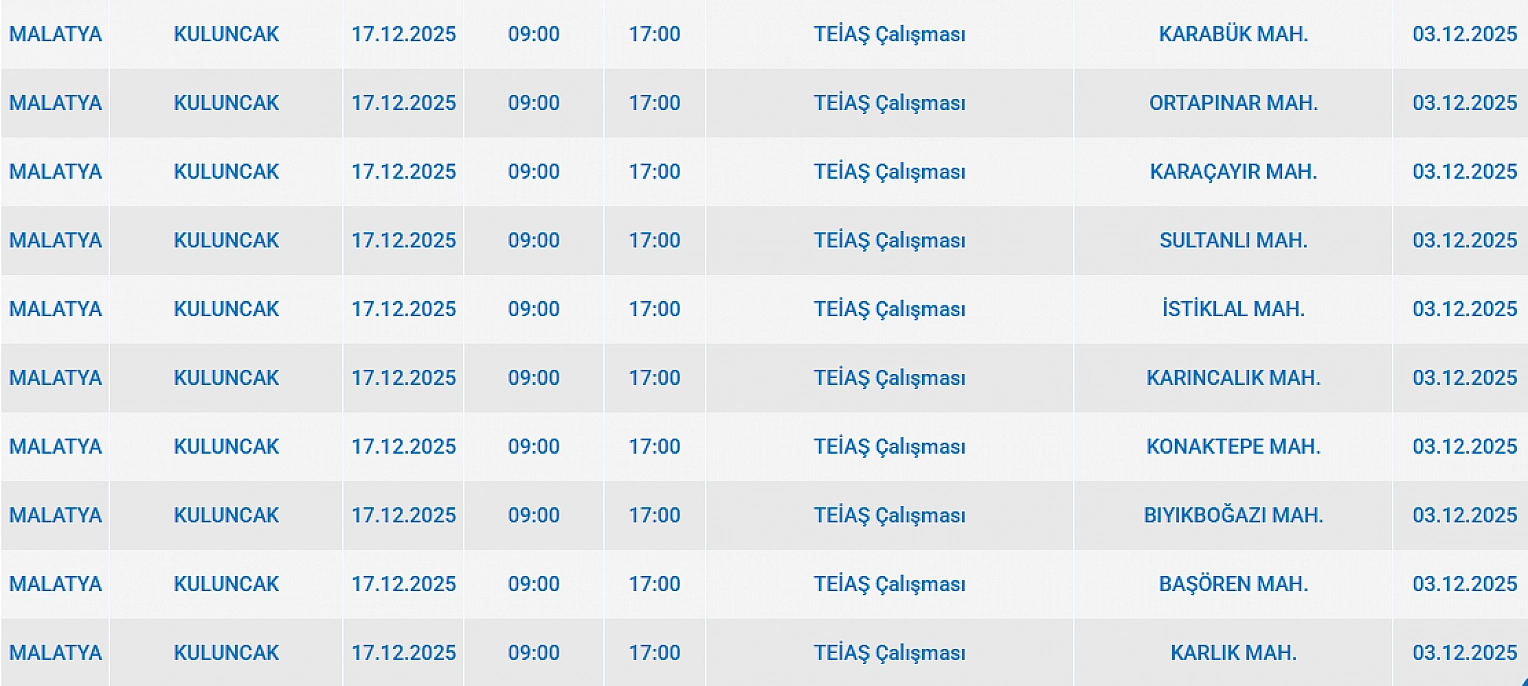 Malatya'da 7 Aralık 2025 Pazar günü Kuluncak, Hekimhan, Darende ilçelerinde planlı bakım çalışmaları nedeniyle elektrik kesintisi yaşanacak. İşte elektrik kesintisi yaşayacak mahalleler…