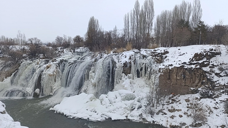 Van'ın Muradiye ilçesi sınırları içerisinde bulunan ve bir kısmı buzla kaplanan Muradiye Şelalesi, kartpostallık görüntülerin ortaya çıkmasına neden oldu.