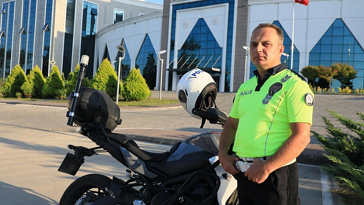 Samsun'da hız yapan motosikletli gence uyarıda bulunan trafik polisi Alper Gökhan Yıldırım, o anları anlattı.