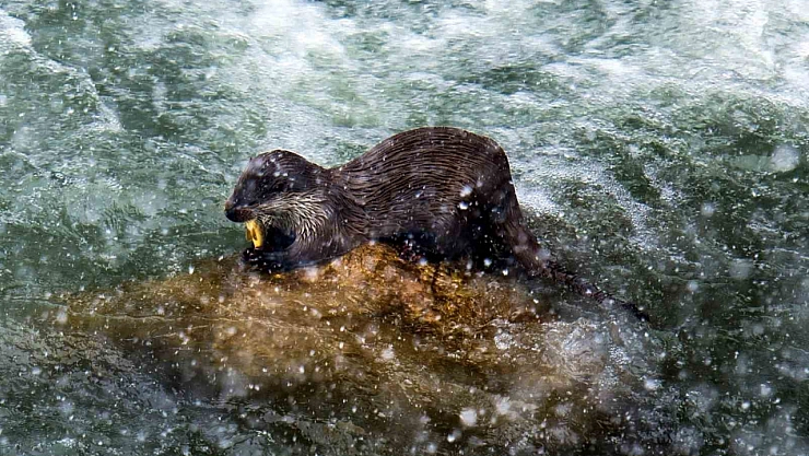 Oyun oynamayı seven, oyuncu bir tür olarak bilinen ve Çoruh’un sularında bata çıka oyunlar oynayan su samuru bu sefer nehir kıyısında görüntülendi.