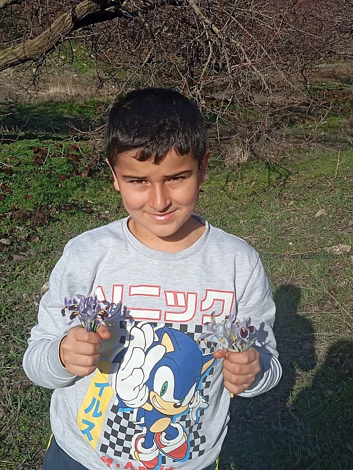 Malatya'nın Kale ve Battalgazi'de karların erimesiyle birlikte doğa canlandı, çocuklar dağ yamaçlarını renklendiren nevruz çiçeklerini topladı.
