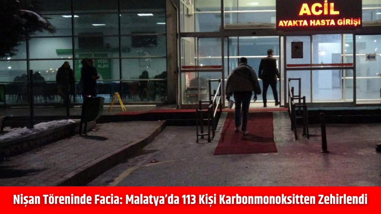Malatya'nın Battalgazi ilçesinde bir düğün salonunda düzenlenen nişan töreni sırasında karbonmonoksit gazı sızıntısı yaşandı. Olayda 113 kişi zehirlenmeden etkilenirken 46'sı hastanelere kaldırıldı.