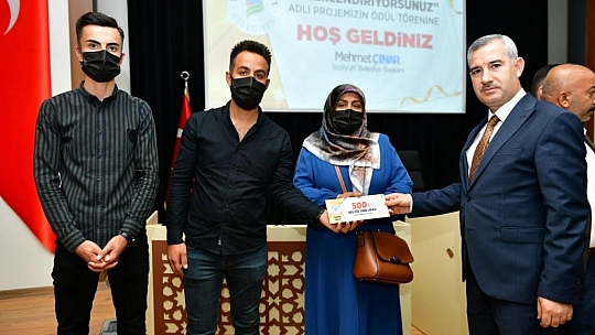 Yeşilyurt Belediyesinde görev yaparken hayatını kaybeden tüm personellere Allah’tan rahmet, aile yakınlarına başsağlığı, kanser tedavisi gören personel ve aile yakınlarına ise ‘geçmiş olsun’ dileklerini ileten Çınar, "Bugün bir kez daha şunu gördük ki biz sevginin, saygının, dayanışmanın ve en önemlisi de ahde vefanın olduğu büyük ve güçlü bir aileyiz. Böylesine güzel değerlerle kuşanmış bir ailenin parçası olmaktan büyük gurur duyuyorum. Birim müdürlüklerimizde başarılı personellerimizi belirlemek adına başlattığımız ‘Siz Değerlendiriyorsunuz’ projesinde mesai arkadaşlarının oylarıyla başarılı seçilen tüm personellerimizi öncelikle tebrik ediyorum. Kurumsal kimliğimizin daha fazla güçlenmesi ve hemşerilerimize ulaştırdığımız hizmetlerimizin hızla ve akıcı olmasının yanı sıra kurum içi iletişim ve diyaloglarıyla ön plana çıkan personellerimizin özverili ve fedakar hizmetlerini takdirle karşılıyoruz. Belediye olarak her alanda hizmet üretip, bölgemize değer katan farklı, yenilikçi ve modern hizmetlerimizin vatandaşlarımıza ulaşmasında personellerimizin çok büyük emeği ve gayreti vardır. Bin 500’e yakın personellerimizle 23 kentten daha fazla nüfusa sahip yaklaşık 350 bin kişinin yaşadığı Yeşilyurt’a en güzel şekilde hizmet ediyoruz. Personellerimizin kurum içi iletişimleri, özverileri ve gayreti her türlü takdirin üzerindedir. Gece gündüz demeden ilçemiz için çalışan tüm personellerimize ve onlara her türlü desteği veren aile mensuplarına teşekkür ediyorum. Personellerimizin moral ve motivasyonlarını üst seviyede tutmak içinde bu tür projeler uygulamaya önem veriyoruz. Hepimizin tek gayesi var o da, Yeşilyurt’u daha fazla büyütmektir, bu inanca sahip olan personellerle çalışmakta bizleri ayrıca motive etmektedir. Başarılı ve örnek alınan bir yerel yönetim modeline ulaşmamızda personellerimizin büyük emekleri vardır. Milletimize hizmet ederken aramızdan ayrılan çok kıymetli mesai arkadaşlarımız oldu. Birlikte aynı mesai ortamını paylaşmaktan onur duyduğumuz tüm kaybettiğimiz arkadaşlarımıza Allah’tan rahmet, kederli ailelerine başsağlığı diliyorum. Onlar her daim bizim kalbimizde yer alacaklar, emeklerini ve hizmetlerini asla unutmayacağız. Bununla birlikte şu anda hastanede ya da evlerinde tedavi gören tüm personellerimize ve aile yakınlarına acil şifalar diliyorum. Bugün ki ödül törenimizde aramızdan ayrılan personellerimizin kıymetli aile mensuplarını ağırlamaktan onur duymaktayız, bizlerde onların abileri, kardeşleriyiz ve her daim yanlarındayız" diye konuştu. Yeşilyurt Belediyesi personelleri arasındaki kardeşlik ve dayanışma ruhunun üst seviyede olduğunu bir kez daha görmekten gurur duyduğuna dikkat çeken Çınar, “ Mesai arkadaşları tarafından başarılı seçilen personellerimiz ise büyük bir ahde vefa gösterip hak ettikleri para ödüllerini hayatını kaybeden Cengiz Polat kardeşimizin ailesine, kanser tedavisi gören Abuzer Bağcı kardeşimiz ile eşi kanser tedavisi gören Mücahit Ocak kardeşimize gönderilmesi noktasında ortak karar aldılar. Personellerimizi gösterdikleri örnek davranıştan dolayı en kalbi duygularımla tebrik ediyorum. Bugün bizim gurur günümüzdür. Personellerimizin bu duyarlı, naif ve kibar yaklaşımları, Yeşilyurt Belediyesindeki sevginin, saygının ve dayanışma ruhunun tezahürüdür. Hizmetlerimizin hemşerilerimize ulaşmamızda köprü vaziyeti gören personellerimizin kendi aralarındaki bu dostlukları, samimiyetleri ve paylaşma kültürleri, bizi güçlü kılan en büyük faktördür. Hizmetleriyle, çalışmalarıyla, belediyemize gelen vatandaşlarımızla olan ilgi ve alakalasıyla kurumsal kimliğimizin her geçen gün daha da güçlenmesine vesile olan tüm personellerimize şükranlarımı sunuyorum. Çalışmalarında üstün başarılar dilerim” ifadelerini kullandı.