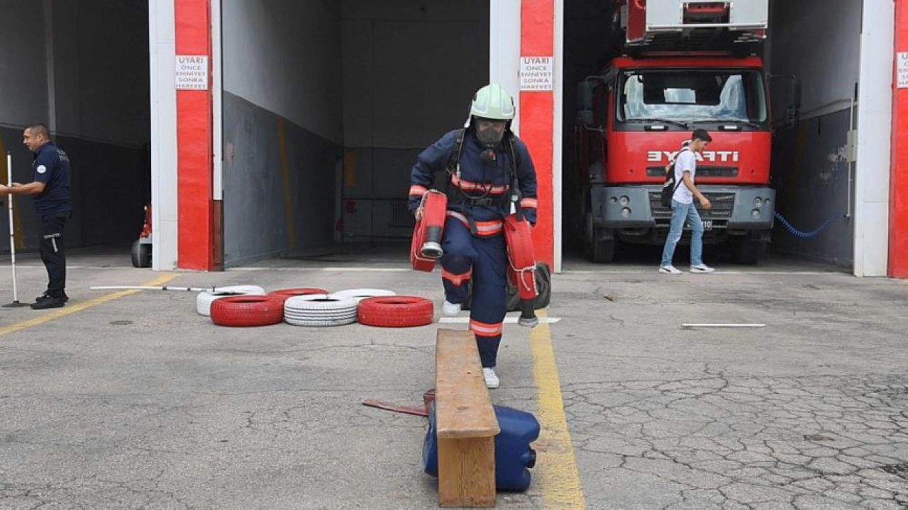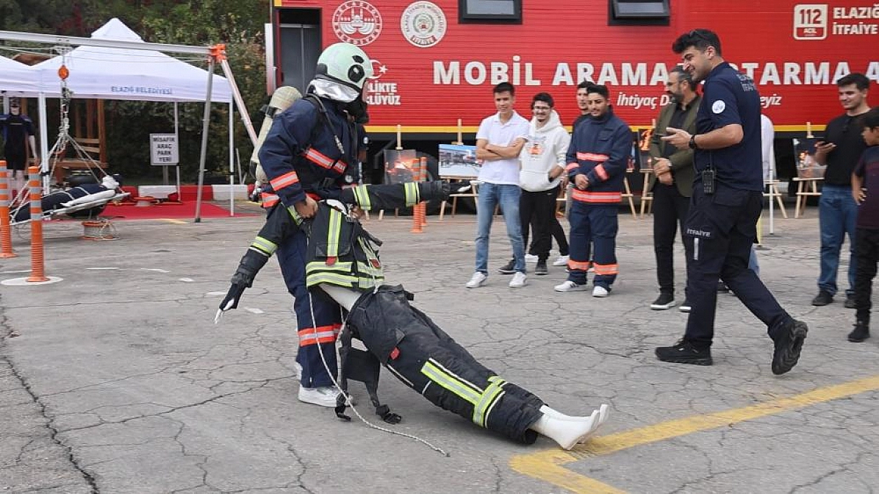 Elazığ'da 'İtfaiye Haftası' nedeniyle müdürlüğe gelen öğrenciler, zorlu itfaiye parkurunda eğitim gördü. Öğrencilere daha sonra itfaiye ekipleri tarafından kullanılan malzemeler tanıtıldı.