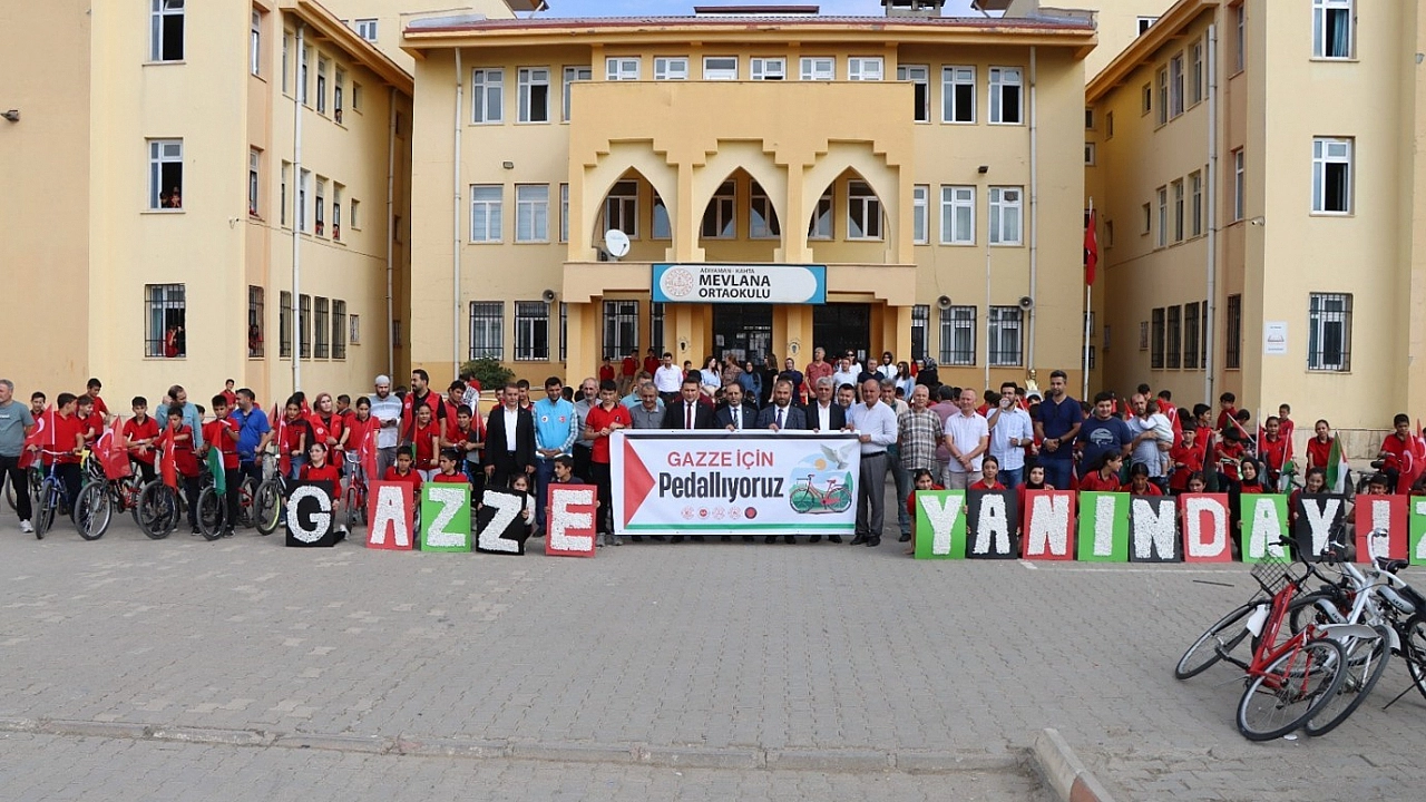 Gazze'de yaşanan acılara sessiz kalmak istemeyen öğrenciler, savaşın mağduru çocuklara destek olmak ve onların sesi olmak amacıyla etkinliğe katıldı. Mevlana Ortaokulu önünden başlayan etkinlik, Mehmet Ali Turan Caddesi güzergahı boyunca devam ederek Kaymakamlık bahçesinde sona erdi. Etkinlikte öğrenciler, Gazze'deki çocukların bisiklet sürmeyi, oyun oynamayı ve gülmeyi özlediği mesajını vererek, savaşlardan en çok çocukların etkilendiğine dikkat çekti.