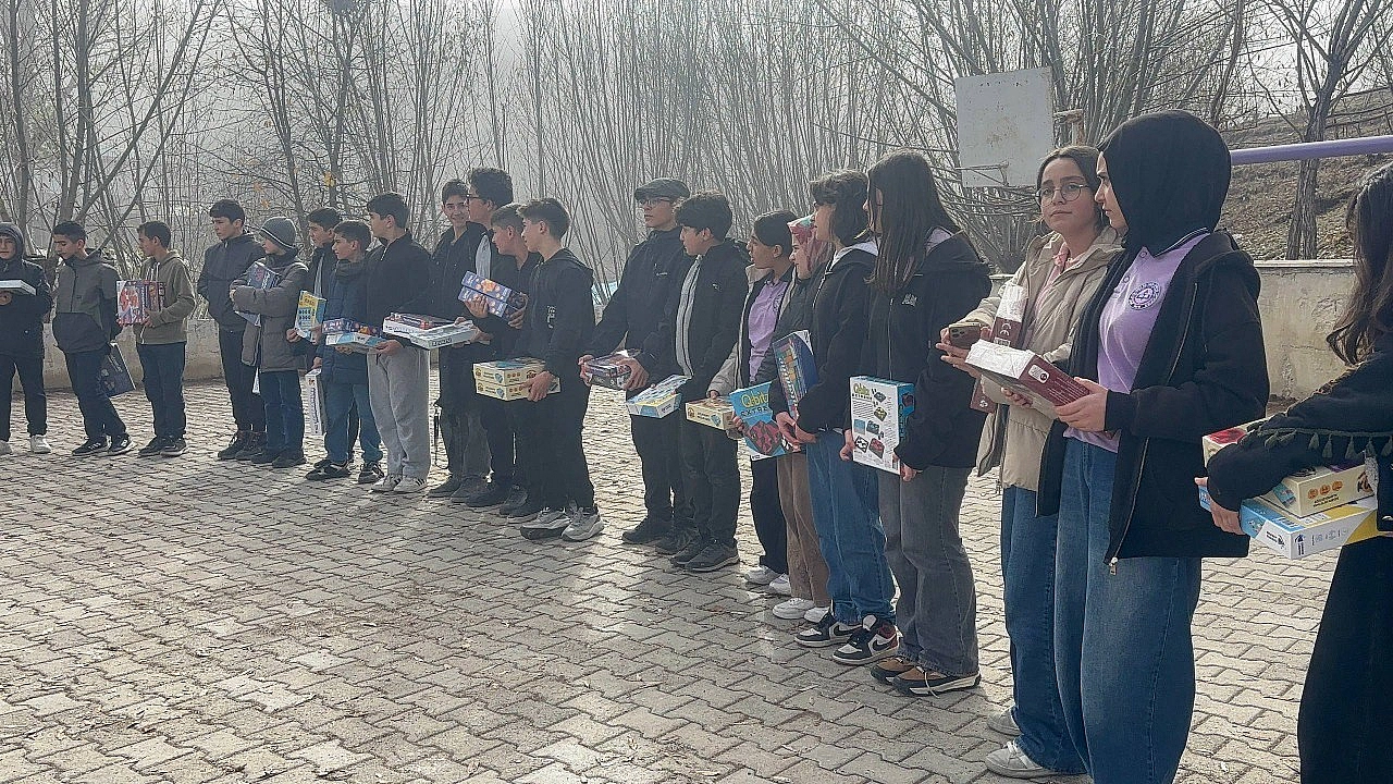 Erzincan Şehit Jandarma Er Fatih Çaybaşı Ortaokulu öğrencileri, 'Oyun Arkadaşım Sensin' projesi kapsamında Çayırlı ilçesine bağlı Verimli köyü İlk ve Ortaokulu'nu ziyaret ederek zeka oyunları ile kışlık mont ve bot hediyeleri ulaştırdı.