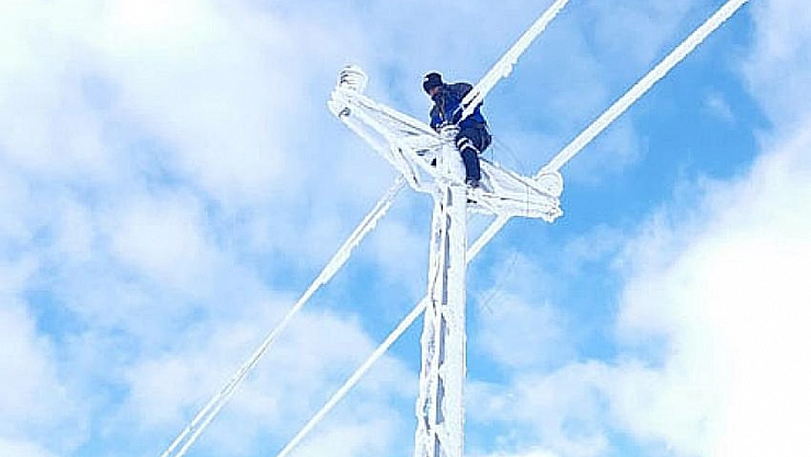 Ağır kış şartlarının etkisini artırdığı Doğu Anadolu Bölgesi'nde Fırat Elektrik Dağıtım A.Ş., sorumluluk alanında vatandaşların kış günü elektriksiz kalmaması için metrelerce yükseklikteki direklerde adeta ölüme meydan okuyor.
