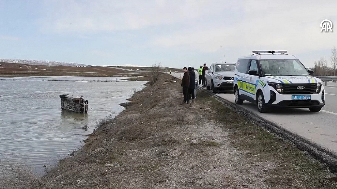 Sivas'ın Hafik ilçesinde, otomobilin yol kenarındaki su birikintisine devrilmesi sonucu 1 kişi yaralandı.
