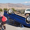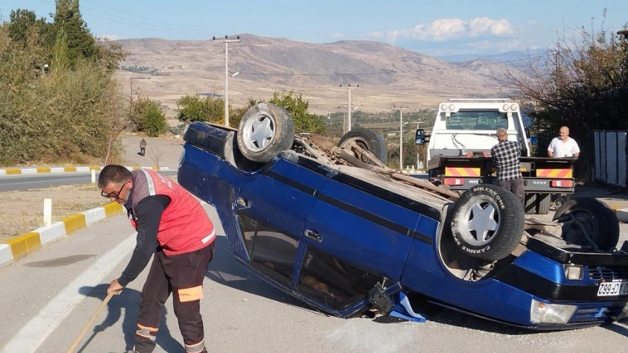 Sivas'ta meydana gelen trafik kazasında bir otomobil takla atarak ters döndü, kazada şans eseri yaralanan olmadı.