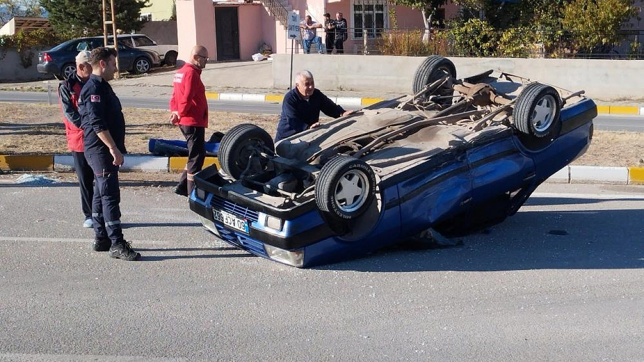 Otomobil takla attı, şans eseri yaralanan olmadı