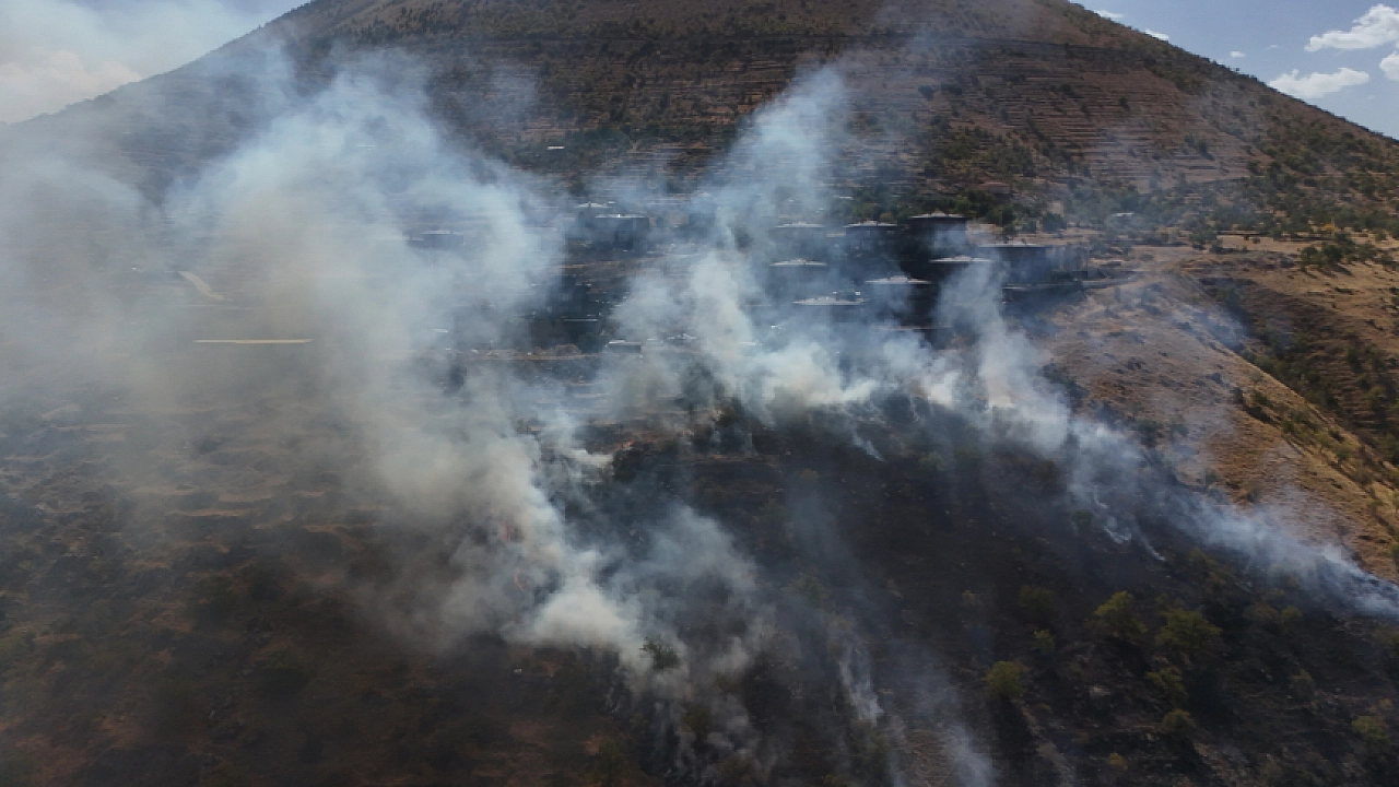 Kayseri'nin Talas ilçesindeki ormanlık alanda çıkan yangına ekiplerin müdahalesi sürüyor. Patlıcan közlenirken dağılan alevler nedeniyle çıktığı belirlenen yangının villalara ulaşmaması için ekipler yoğun çaba sarf ediyor.
