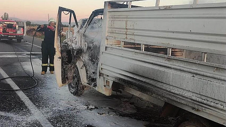 Pikapta yangın çıktı