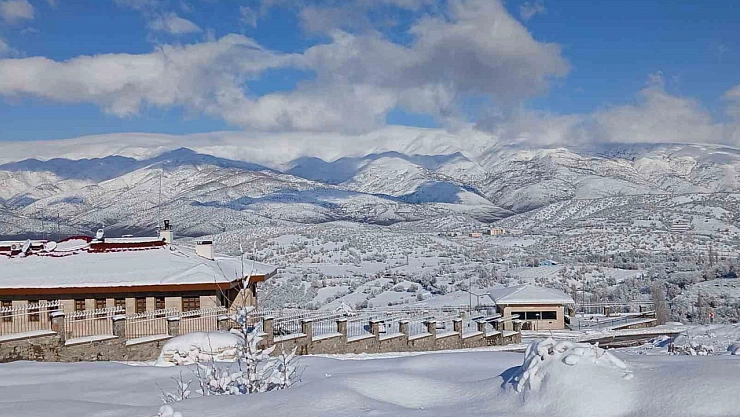 Malatya'nın Pütürge ilçesinde etkili olan kar yağışı bölgeyi beyaz örtüyle kaplarken, görsel bir şölen oluştu.