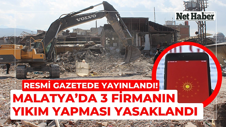 Resmi gazetede yayınlandı! Malatya'da 3 firmanın yıkım yapması yasaklandı