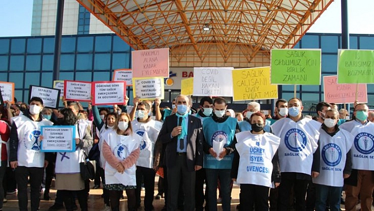 Bingöl, 7 Aralık Salı ve 9 Aralık Perşembe günlerinde tam gün tüm Türkiye’de iş bırakacaklarını belirtti. 'Pandemiden dolayı ülke ekonomisi sıkıntı yaşıyorsa buna destek olmaya hazırız' diyen Bingöl, "Yok, ekonomi iyi ise çalışanlar arasında niye ayrım yapıyorsunuz. Bu sistem artık sağlık çalışanları için zulümdür. Hakkınız ödenmez diyerek hakkımızı ödemediniz. Bizleri yok saydınız bizde sizi yok sayarak daha önce vermiş olduğunuz alkışları geri iade ediyoruz. Sağlık çalışanlarını görmezden gelenleri bizde görmeyeceğiz. Şimdi birlik zamanı sağlık ordumuz için haklı talebimiz için meslek onurumuz için birlik olma zamanıdır. Sağlık çalışanlarının önemli bir kesimini yok sayarak yapılan bu düzenleme, yüz binlerce sağlık çalışanımızı üzmüş ve isyan noktasına getirmiştir. Sağlık Bakanlığından Üniversite hastanelerindeki tüm personelleri de kapsayacak şekilde aklı-selim adımlar atmasını bekliyoruz. Sağlık çalışanlarına yapılan en büyük haksızlık, onları birbirine düşürmektir. Biz buna itiraz ediyoruz. 7 Aralık Salı ve 9 Aralık Perşembe günlerinde tam gün olmak üzere Sağlık-Sen olarak tüm Türkiye’de iş bırakıyoruz. Kamuya ait tüm sağlık kurumlarında; yoğun bakımlar, acil servisler, acil ameliyat hizmetleri, 112 ambulans hizmetleri, diyaliz hizmetleri gibi acil sağlık hizmet birimleri dışında kalan tüm birimlerde iş bırakma eylemi gerçekleşecektir. Sağlık kurumlarında eylem dolayısıyla vatandaşlarımızın hizmet kesintisinden etkilenerek herhangi bir mağduriyet yaşamaması adına tüm vatandaşlarımızın acil hal dışında sağlık kurumlarına başvurmamaları önemle duyurulur. Doğabilecek sıkıntıları ortadan kaldırmak için vatandaşlarımızın da desteğini bekliyoruz. Sağlık çalışanlarının insani ve mesleki onuruna yaraşır bir ücret düzenlemesi yapılıncaya kadar eylemlerimize devam edeceğimizi kamuoyu ile paylaşıyoruz" açıklamasında bulundu.