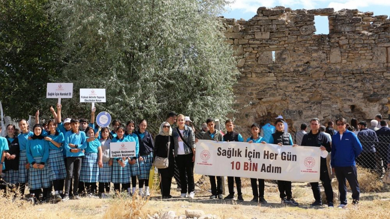 Sağlıklı beslenme ve hareketli yaşamı öne çıkaran pankartları taşıyan katılımcıların yürüyüşü, köydeki tarihi alanlara yönelik geziyle sona erdi.