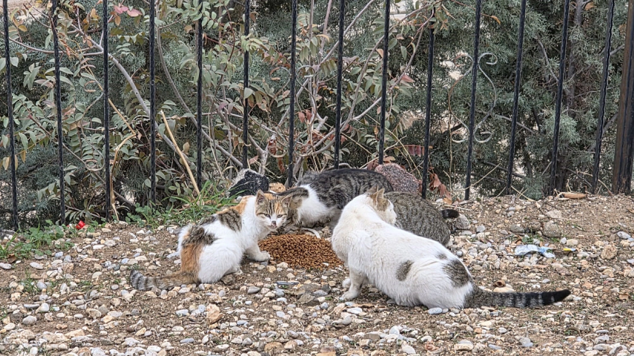 Şanlıurfa'nın Siverek ilçesinde hayırseverler, soğuk kış günlerinde sahipsiz kediler için mama desteğinde bulundu.