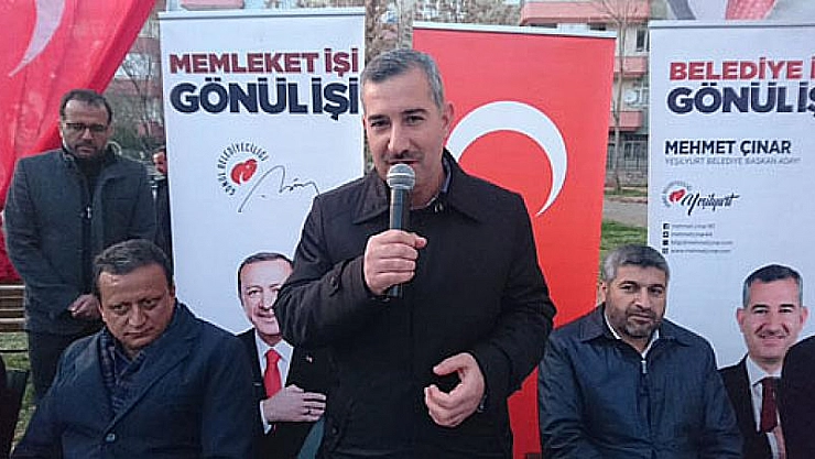 Yeşilyurt Belediye Başkanı ve AK Parti Yeşilyurt Belediye Başkan Adayı Mehmet Çınar, '31 Mart Mahalli İdareler Seçimleri, başta ülkemizin olmak üzere kentimizin ve ilçemizin kalkınması ve büyümesi adına büyük önem taşımaktadır. 31 Mart'ta Yeşilyurt'ta yenibir destan yazacağız ve sandıktan zaferle çıkacağız' dedi.