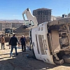 Şantiyede hafriyat kamyonu devrildi: 1 yaralı
