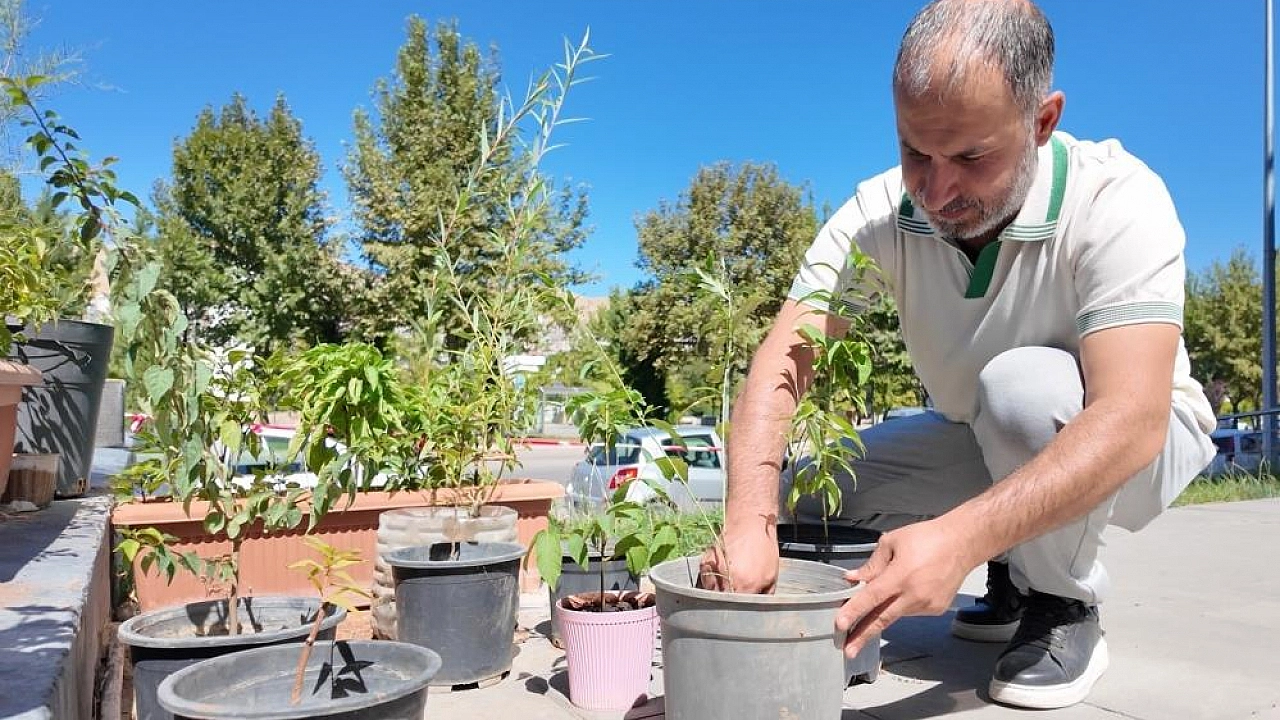 Çalışması ile hem çevreye hem de toplumsal yaşama katkı sağlayan Kenan Eskibağlar, "Çölleşmiş veya kurumuş tarafta olan her yeri ağaçlandırmak için mücadelemi veriyorum. Elimden geldiği kadar her taraftan da topluyorum. Buna arkadaşlarımız ve sitede oturduğumuz komşularımız da eşlik ediyor. Onlarla beraber aynı şekilde bütün her tarafı yeşillendirmeye çalışıyoruz. Orman yangınlarından sonra en azından bizler de güzel şeylere vesile olmaya çalışıyoruz. 2020 Elazığ'da yaşanan depremden sonra yıkılan evlerin bahçelerine kepçeler girmeden, orada çıkartabildiğim fideleri ve meyve ağaçlarını çıkarttım. Hepsini götürüp herhangi bir boş olan araziye dikmeye başladım. Bu da beni mutlu etmeye başladı ve keyif vermeye başlayınca yıl 2025 oldu ve halen daha dikmeye devam ediyorum. Özlem duyulan köy hayatını şehirde de yaşamaya başladım. 2020'den beri 170'e yakın ağaç diktim ve son nefesime kadar da dikeceğim. Bizim orada beklentimiz, bir kuş dalına konsa ve bir meyve yese veyahut onun gölgesinde birinin oturması bile bana yeterli" dedi.