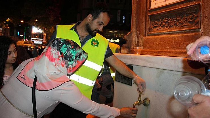 Malatya'da PTT önündeki şerbet çeşmesinden vatandaşlara teravih namazı sonrası soğuk şerbet ikram ediliyor.