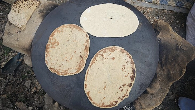 Köylerde ekmek ihtiyacını karşılamak için haftada bir toplanan kadınlar, akşamdan ekşi hamurla mayaladıkları, bölgede üretilen tam buğday unu ile yoğrulan hamuru oklava ile açarak odun ateşinde sac üzerinde pişiriyor.