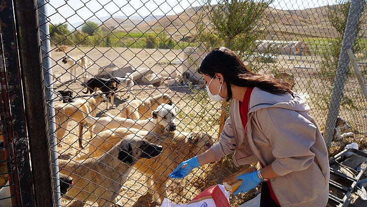 Adıyaman’da ilk defa hizmete açılan 7 dönümlük alandaki hayvan barınağında hayvanlara düzenli bakımlar yapıldığı gibi veterinerler eşliğinde yemekleri veriliyor.