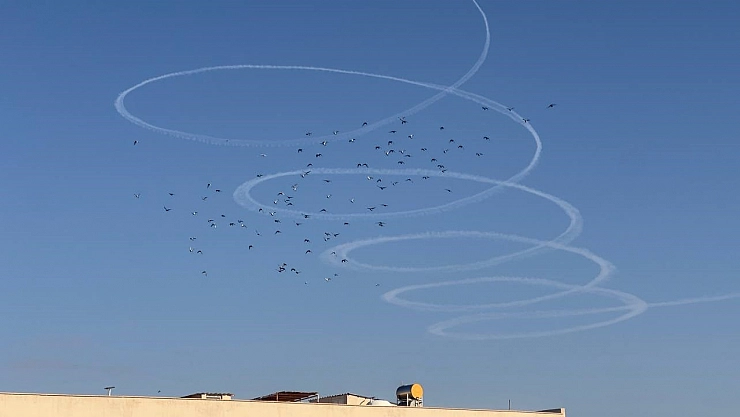 İlk defa böyle bir olayla karşılaştıklarını söyleyen Muhammed Ali Ayaz, "İlk defa uçakların dairesel şekiller çizerek hareket ettiğini görüyorum. Her zaman Suriye'ye düz hatta gidip geldiklerini görürdük ama ilk defa dairesel hareketler yaptıklarını görüyoruz" dedi.