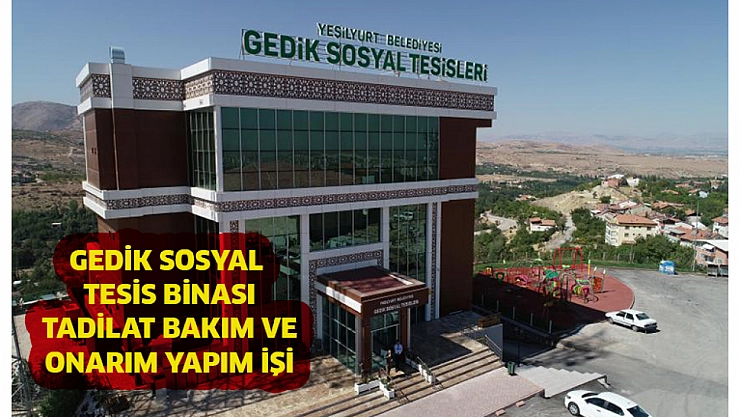 Yeşilyurt Belediyesi Destek Hizmetleri Müdürlüğü, Gedik Sosyal Tesis binasının tadilat bakım ve onarım yapım işinin açık ihale usulü ile ihale edileceğini açıkladı.