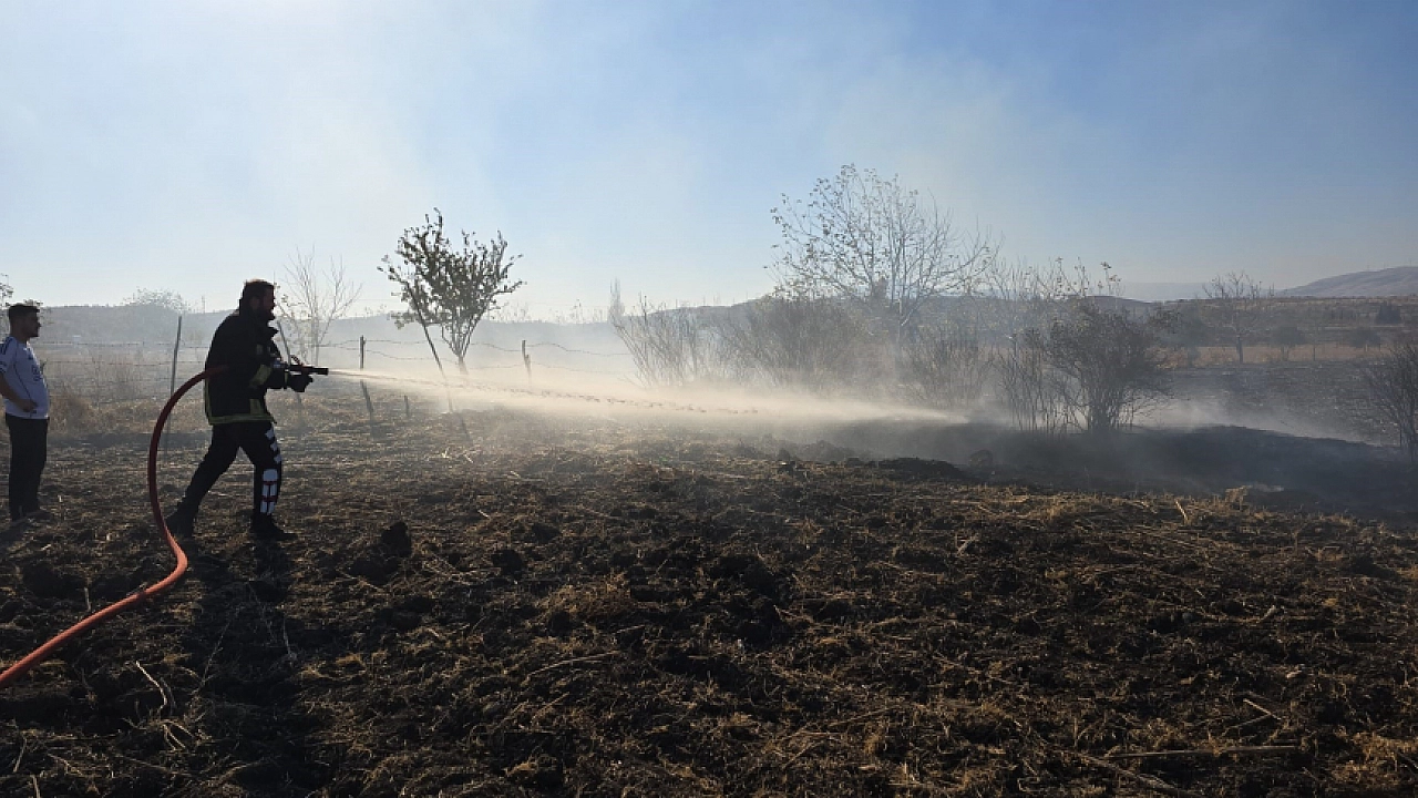 Adıyaman'ın Gölbaşı ilçesinde anız kalıntılarının olduğu arazide çıkan yangın, ekiplerin müdahalesi sonucu söndürüldü.