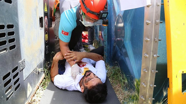 Belirlenen alana seyyar hastane kuruldu. Yıkılan binaların enkazında kalan yaralıları UMKE ekipleri kurtardı. Tahliye edilen yaralılar, seyyar hastanede yapılan ilk müdahale sonrası ambulanslarla hastanelere sevk edildi.