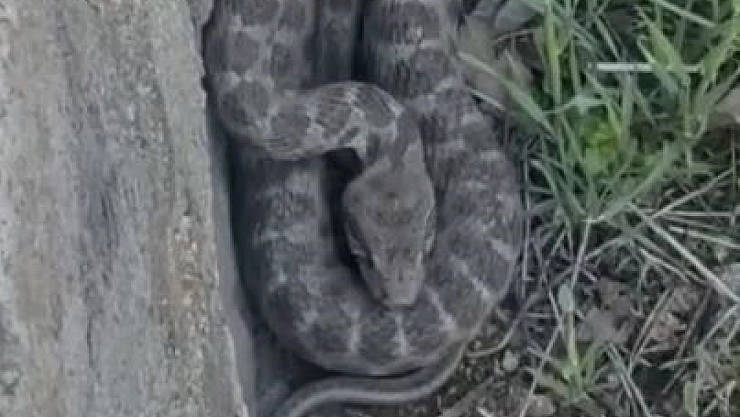 Elazığ'ın Keban ilçesine bağlı Altıyaka köyünde koca engerek yılanı görüntülendi. Engerek yılanını görüntüleyen kişinin rahat tavrı ve konuşmaları ise dikkat çekti. Vatandaş, bir süre incelediği hayvan için yanındaki arkadaşına, ''Valla akrabalarımdan birini buldum burada'' diye espri yaptı.