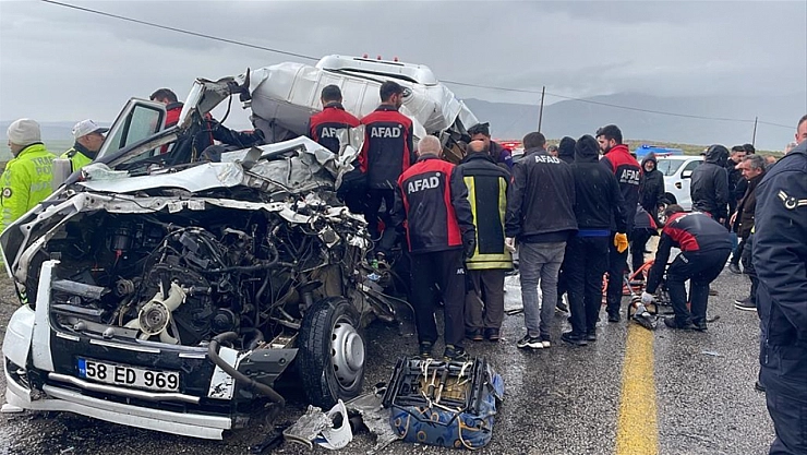 Sivas'ta tır ile yolcu minibüsünün çarpışması sonucu ilk belirlemelere göre 4 kişi hayatını kaybetti.