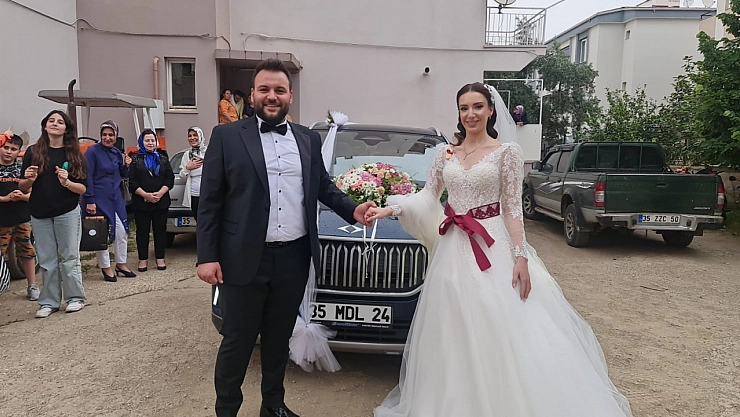 Türkiye'nin yerli ve milli aracı TOGG, İzmir'de dünya evine giren genç çiftin gelin arabası oldu.