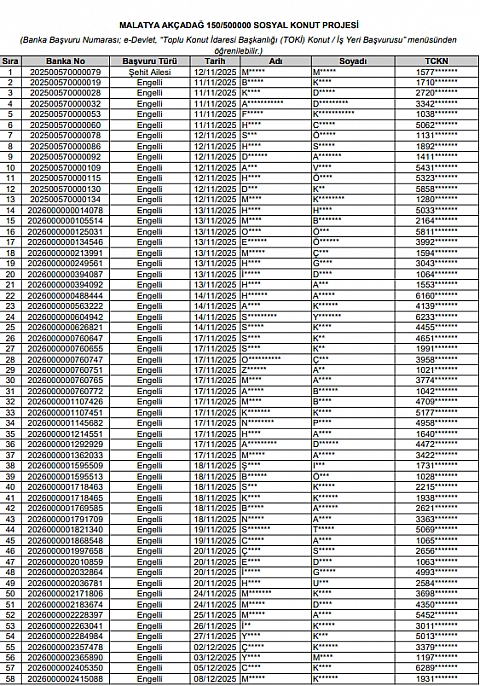 - TOKİ 500 bin sosyal konut projesi'nde Malatya kurası başlıyor: İsim listeleri açıklandı